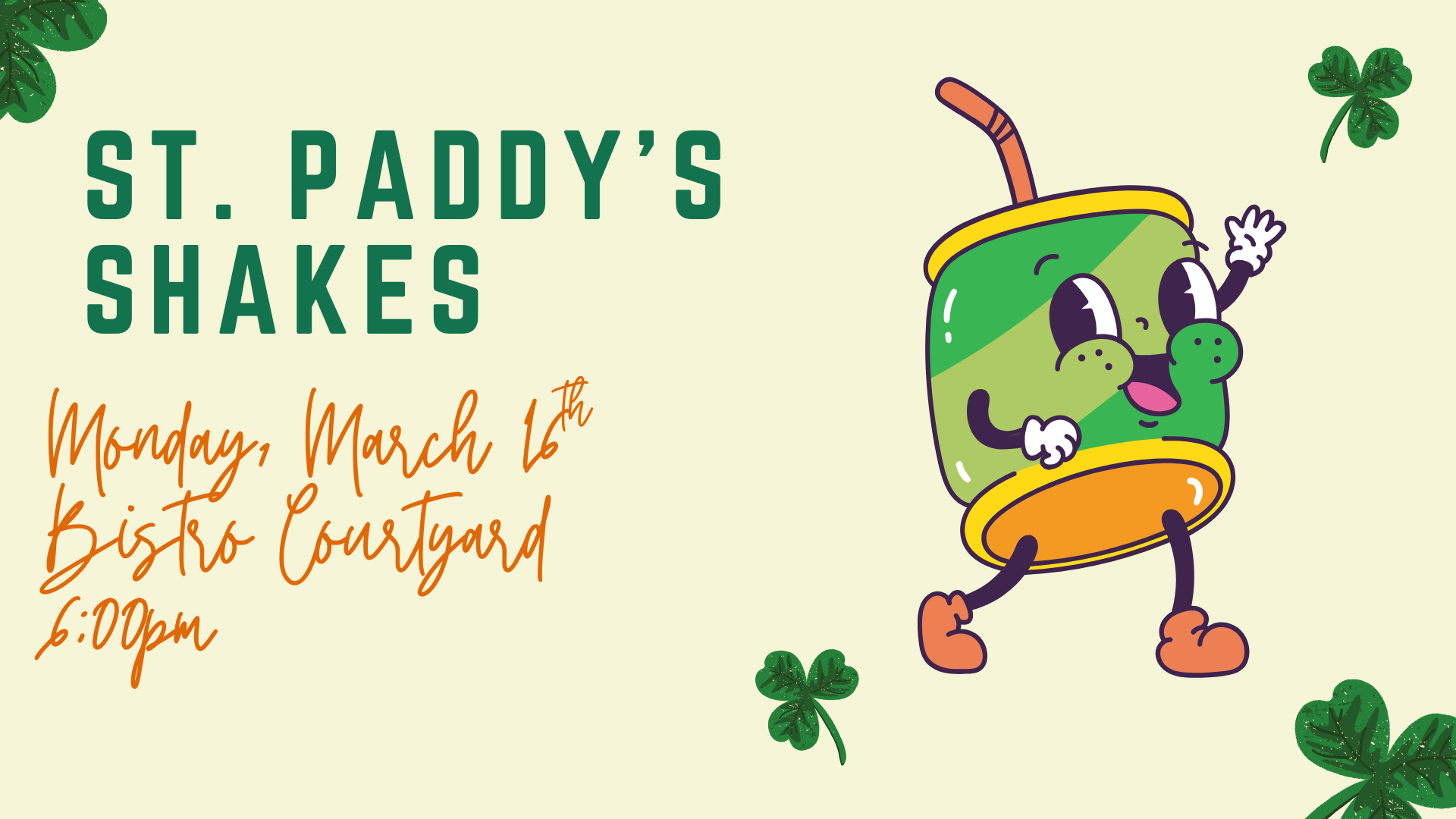 Join The Office of Student Life for a gourmet milkshake bar in honor of St. Patrick’s Day!
